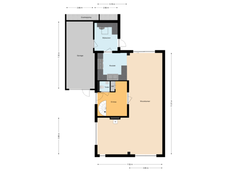 - 118 m² (12,08 meter diep en 9,74 meter breed)