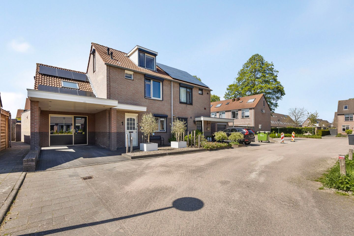 Als kers op de taart beschikt deze woning over een zeer fraaie achtertuin op het zuidwesten. Deze heerlijke tuin is speels aangelegd, biedt u veel vrijheid en beschikt over een groot terras met gazon, afgewisseld met sierbestrating, diverse hagen en beplanting. Hier kunt u altijd een fijn plekje in de zon of juist in de schaduw vinden! De eyecatcher van deze tuin is de aangebouwde tuinveranda. Een fijne plek om vroeg in het seizoen al te kunnen genieten van het buitenleven! Dit buitenverblijf heeft dankzij de schuifpui een prettige verbinding met de woonkamer en biedt u net dat stukje extra wooncomfort. Aan de voorzijde is er een ruime oprit met carport aanwezig, waardoor het altijd mogelijk is om meerdere auto’s op eigen terrein te kunnen parkeren.