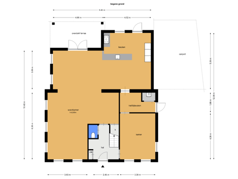 De hal is de eerste kennismaking met de woning en die is bij deze woning meteen goed. De hal geeft u een verzorgde indruk. In de hal bevindt zich de meterkast, de trapopgang naar de eerste verdieping en een toiletruimte met toilet en fonteintje. Vanuit de hal krijgt u toegang tot de woonkamer en tot de multifunctionele ruimte.