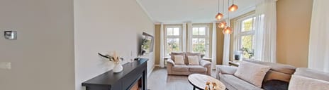 Pak uw eigen spullen maar en plaatst deze in de woonkamer, hier bent u thuis. De woonkamer heeft een keurige afwerking met een gestuukt plafond, lichte wanden en een pvc-vloer. Alle ingrediënten voor een neutrale basis, waar u met uw eigen spullen gemakkelijk uit de voeten kunt. Door de vele raampartijen valt er veel daglicht naar binnen. Verder is er aan de voorzijde plek voor een royale zithoek en aan de achterzijde kunt u een eettafel plaatsen. Aan de achterzijde bevindt zich ook de openslaande deuren naar de tuin. Ideaal, op mooie dagen kunt u deze fijn openen zodat u binnen met buiten combineert.