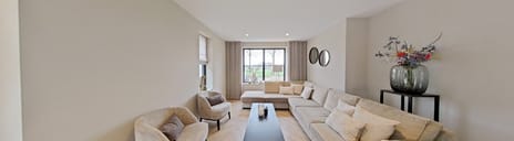 De woonkamer is een ruimte waar u direct ziet dat alles met zorg is gedaan. Een strak gestuukt plafond, een prachtige PVC-visgraatvloer en lichte wanden zorgen voor een rustige basis met een frisse uitstraling. Aan de voorkant is een groot raampartij. Vanuit uw stoel of vanaf de bank geniet u van het mooie uitzicht over de weilanden. Daarbij valt er veel daglicht naar binnen door het raampartij.