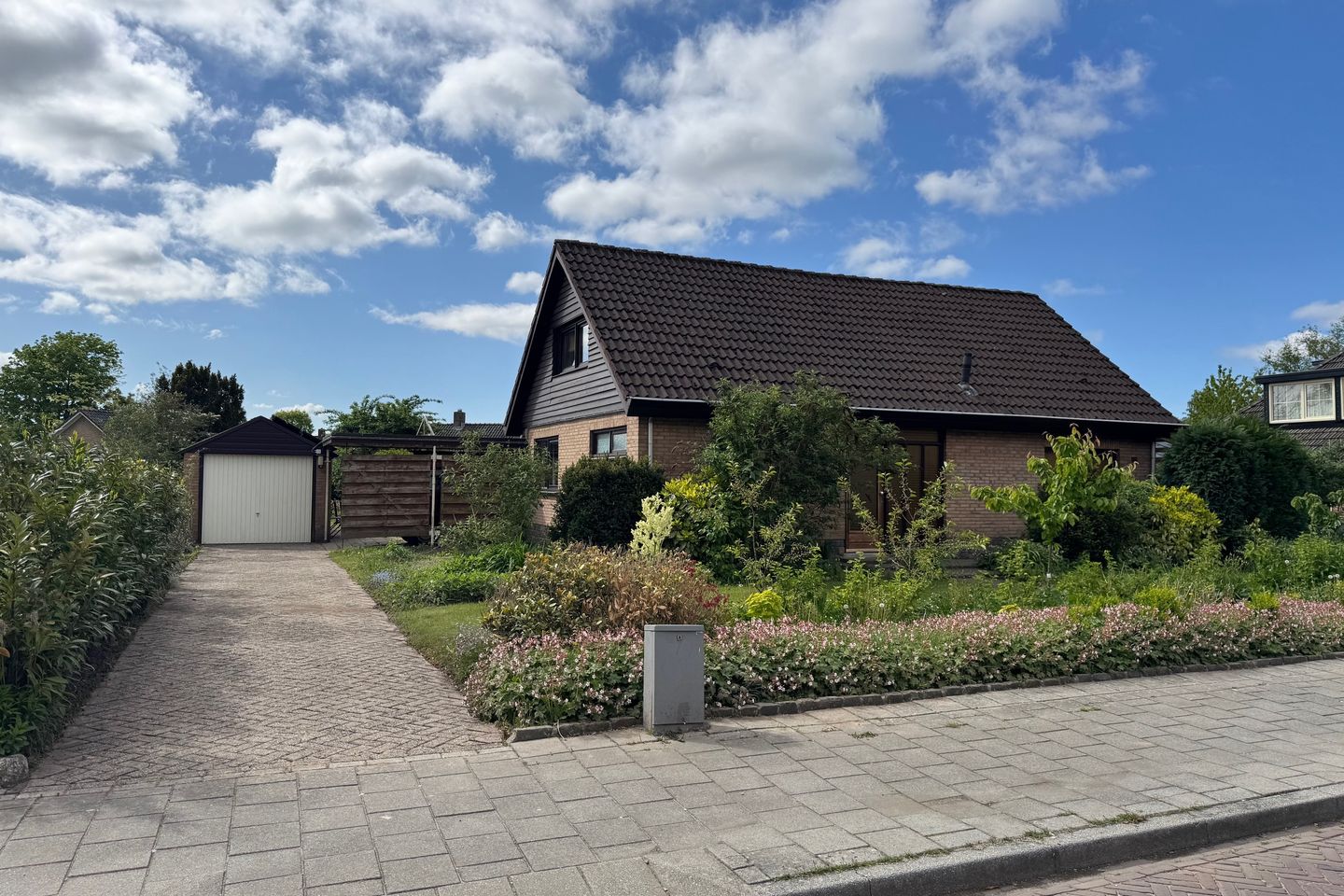 Riante tuin rondom met de achtertuin op het zuiden gelegen. De tuin beschikt o.a. over een gazon, grote moestuin, terras, carport en een ruime vrijstaande garage met oprit, waardoor er veel parkeerruimte is op eigen terrein.