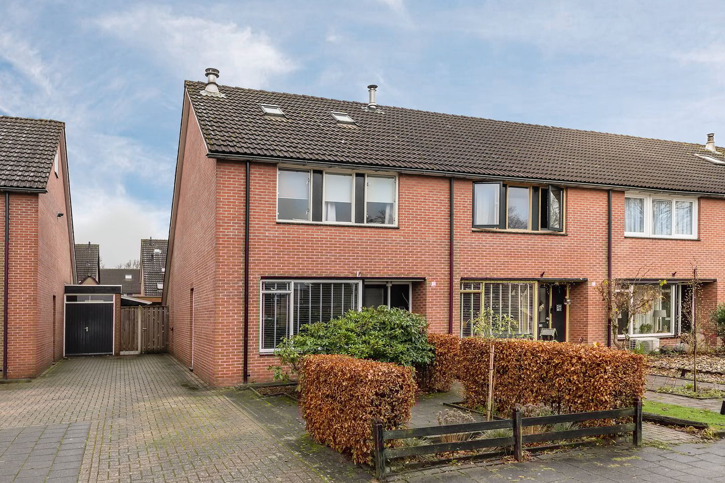 Parkeren, geen probleem want je hebt je eigen oprit. Deze oprit is afgesloten door een poort waardoor de achtertuin een veilige plek is voor kinderen.