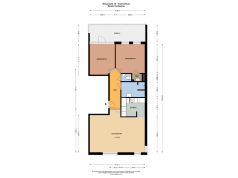 - 14 m² (2,08 meter diep en 6,79 meter breed)