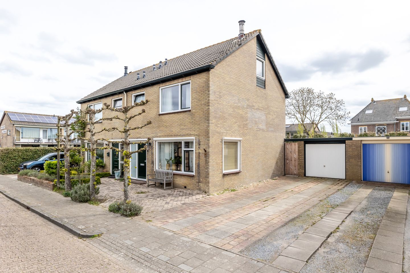 Aan de zijkant bevindt zich de vrijstaande garage, die zowel via de tuin als vanaf de oprit toegankelijk is. Ideaal voor het stallen van fietsen, gereedschap of natuurlijk de auto. Met de eigen oprit voor de deur is parkeren bovendien nooit een probleem.