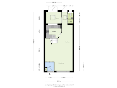 - 39 m² (7,00 meter diep en 5,50 meter breed)