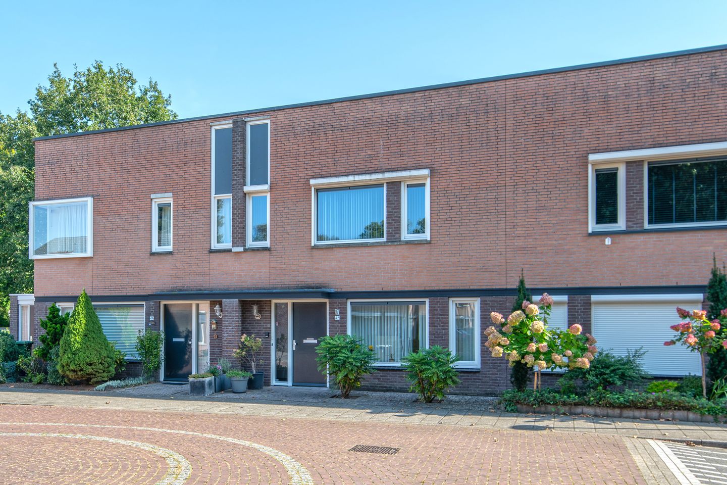 Gelegen aan een rustige laan met volwassen bomen en een brede groenstrook in het midden.