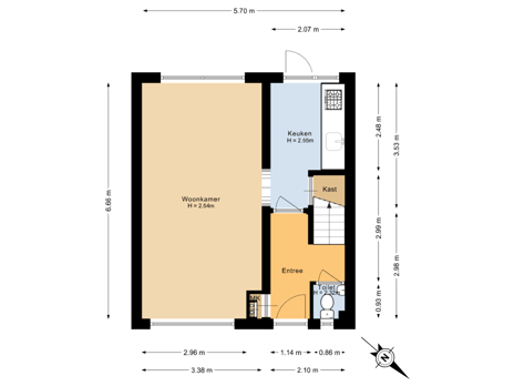 De woning is zorgvuldig professioneel ingemeten. De Meetinstructie is gebaseerd op de NEN2580. De Meetinstructie is bedoeld om een meer eenduidige manier van meten toe te passen voor het geven van een indicatie van de gebruiksoppervlakte. De Meetinstructie sluit verschillen in meetuitkomsten niet volledig uit, door bijvoorbeeld interpretatieverschillen, afrondingen of beperkingen bij het uitvoeren van de meting.