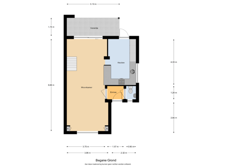 - 43 m² (8,20 meter diep en 5,20 meter breed)