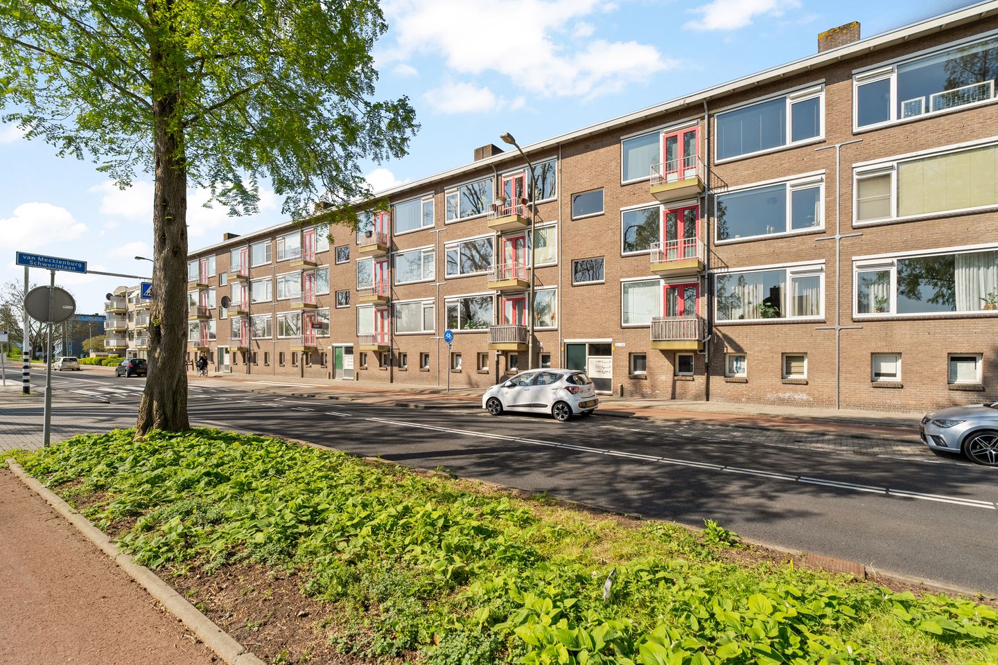 Entree, hal met meterkast, twee inbouwkasten en moderne toiletruimte met wandcloset. Ruime slaapkamer aan de voorzijde met inbouwkast en toegang tot het 1e balkon.