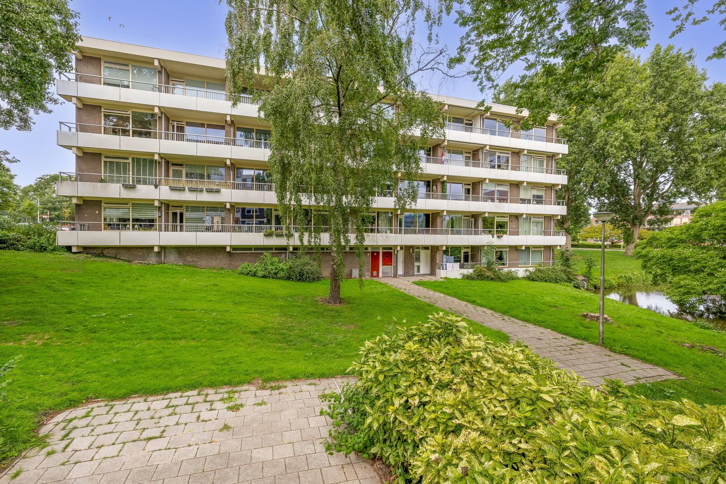 Via het afgesloten portiek zijn de verdiepingen met de trap of lift te bereiken.