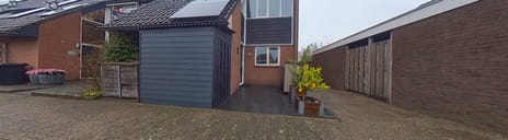 De woning is rustig gelegen aan een voetpad naast een parkeer hof. Aan de voorzijde van de woning een keurig aangelegde tuin met bestrating en beplanting. Tevens is hier een extra berging met vergunning aanwezig. De achtertuin is breed, zonnig en onderhoudsvriendelijk aangelegd. Direct achter het huis ligt een ruim terras, gevolgd door een groot gazon. Hierdoor is er volop ruimte om te spelen, loungen of heerlijk buiten te eten. Achter in de tuin staat een stenen berging. Dankzij de achterom is de tuin goed bereikbaar met fietsen of tuingereedschap.