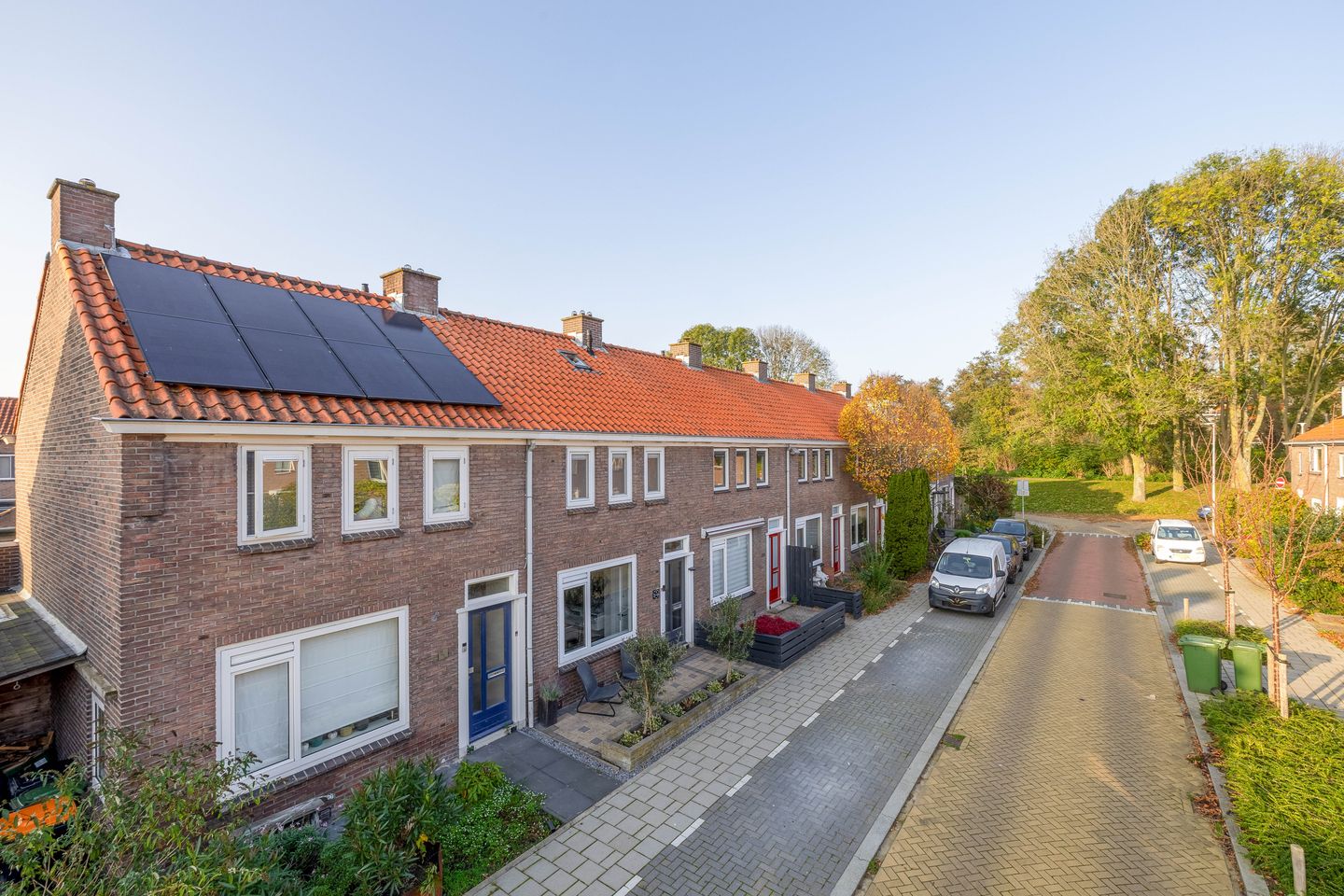 De woning heeft een 11 meter diepe achtertuin op het westen, volledig bestraat en met een fietsenschuurtje. Via een achterom is de straat bereikbaar. Direct achter de woning is een overkapping gemaakt in 2022 waar plaats is voor een ruime loungeset om heerlijk te zitten op mooie zomeravonden.