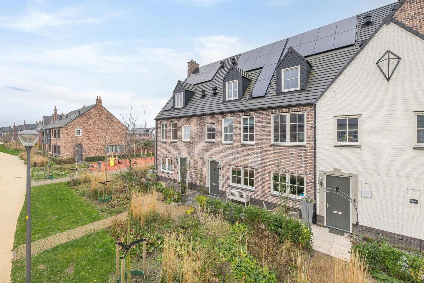 De woning is in 2023 gebouwd, wat betekent dat de nieuwbouwgarantie nog van toepassing is. Het huis is gelegen op een perceel van 129 m² en heeft een woonoppervlak van 144 m². De dubbele openslaande deuren geven toegang tot de zonnige tuin op het zuidwesten.