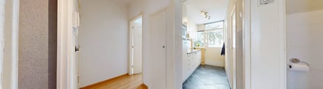 De tweede slaapkamer is een kleinere slaapkamer, welke geschikt is als logeer- of werkkamer. Op deze kamer bevindt zich ook de CV ketel en de aansluitingen voor de wasmachine.