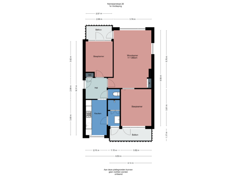 Deze informatie is door ons met de nodige zorgvuldigheid samengesteld. Onzerzijds wordt echter geen enkele aansprakelijkheid aanvaard voor enige onvolledigheid, onjuistheid of anderszins, dan wel de gevolgen daarvan. Alle opgegeven maten en oppervlakten zijn indicatief.