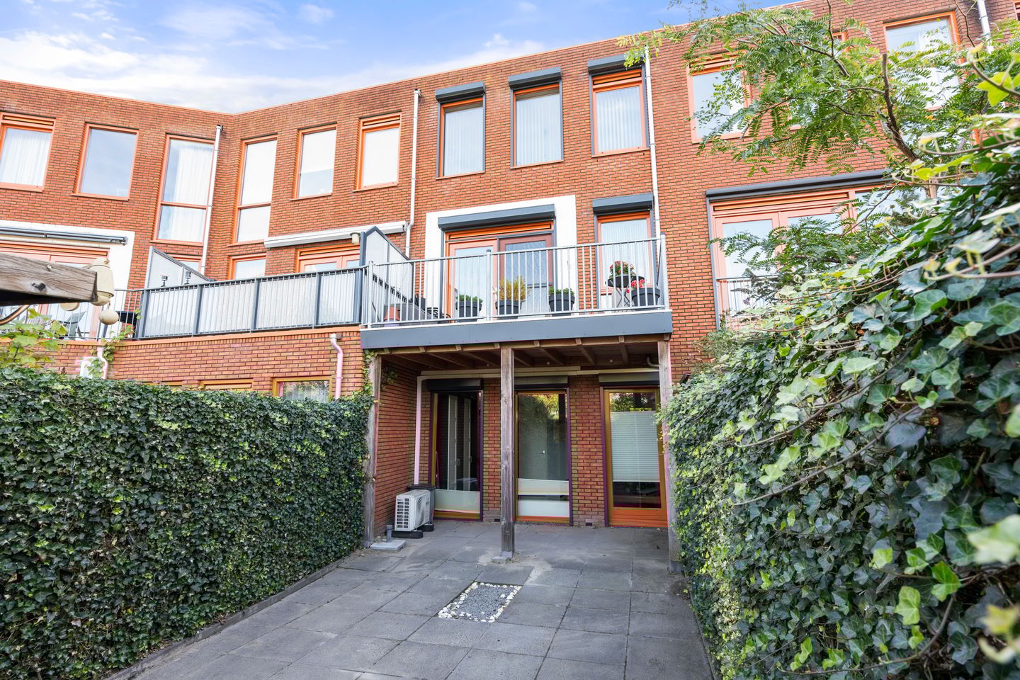 De achtertuin is onderhoudsvriendelijk aangelegd en voorzien van een houten berging en een achterom. Doordat het balkon van de eerste verdieping voor beschutting zorgt, is er altijd een fijn plekje in de schaduw of juist in de zon. De ligging op het westen maakt dit een ideale tuin om te ontspannen na een drukke dag.
