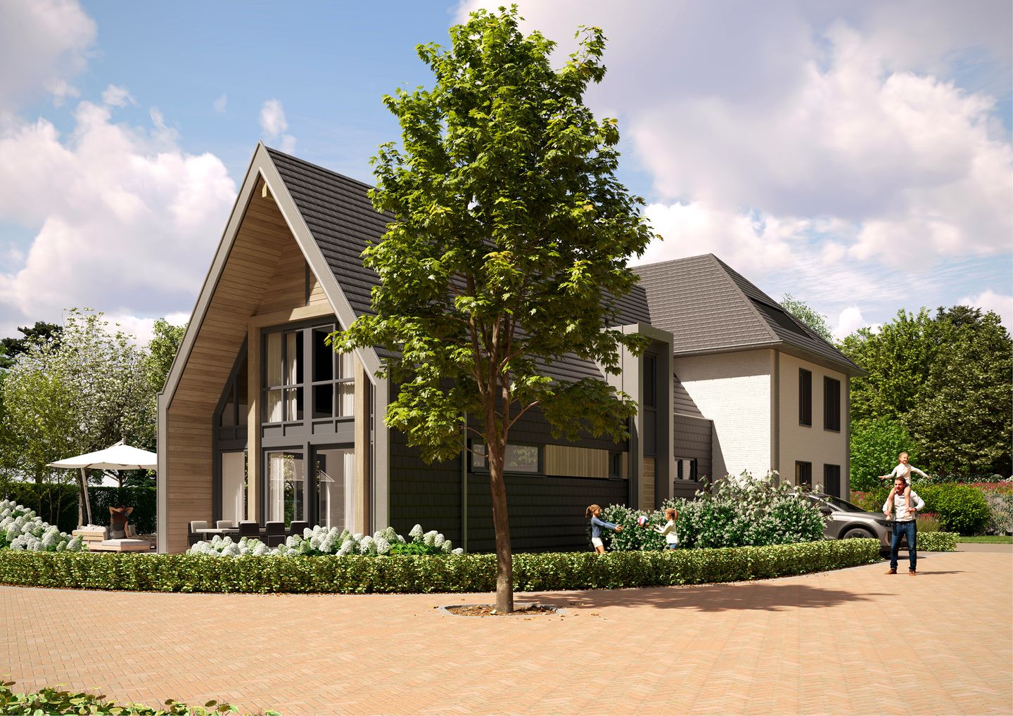 De overgang naar de Groteweg wordt voorzien van een glooiende grondwal met beplanting, afgestemd op de landschappelijke opbouw van het landgoed “De Polberg”. Met een knipoog naar het landgoed, maar ook met verwevenheid die het plan met Wapenveld heeft, krijgt uw nieuwe woondomicilie een meerwaarde die direct voelbaar zal zijn.