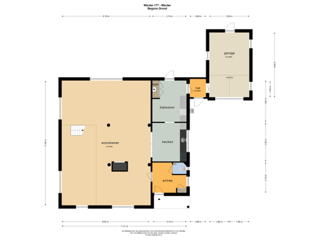 * Woonkeuken met toegang tot bijkeuken en garage.