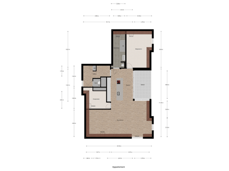 Bij aankomst voelt u direct de verzorgde en rustige uitstraling van het complex. Via de trapopgang bereikt u de voordeur, die u toegang geeft tot dit riante appartement. Eenmaal binnen staat u in een lichte hal met ruimte voor uw jas en schoenen. Hier bevinden zich ook een praktische vaste kast met cv-opstelling en extra opbergruimte – ideaal voor alles wat u netjes uit het zicht wilt bewaren. Vanuit de hal loopt u door naar de leefruimtes en wordt u als vanzelf meegenomen naar de royale woonkamer.