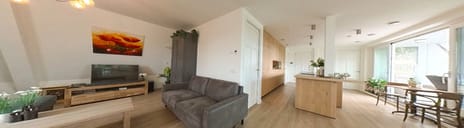 Zodra u de woonkamer binnenstapt, wordt u omarmd door ruimte en licht. De schuine kaplijnen geven karakter, terwijl de grote dakramen zorgen voor een zee aan daglicht. Het is de perfecte plek om het leven in een rustiger tempo te vieren. Zie uzelf zitten op de bank met een plaid om de schouders en een goed boek in de hand, of juist even wegdromend terwijl u naar buiten kijkt en mijmert. De royale indeling biedt plek voor een comfortabele zithoek én een gezellige eethoek – ideaal voor wie houdt van samenzijn in een warme, huiselijke sfeer. En wat minstens zo prettig is: het gehele appartement is voorzien van vloerverwarming, waardoor u in alle seizoenen geniet van aangename warmte en een luxe wooncomfort.