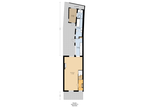 - 47 m² (13,50 meter diep en 3,50 meter breed)