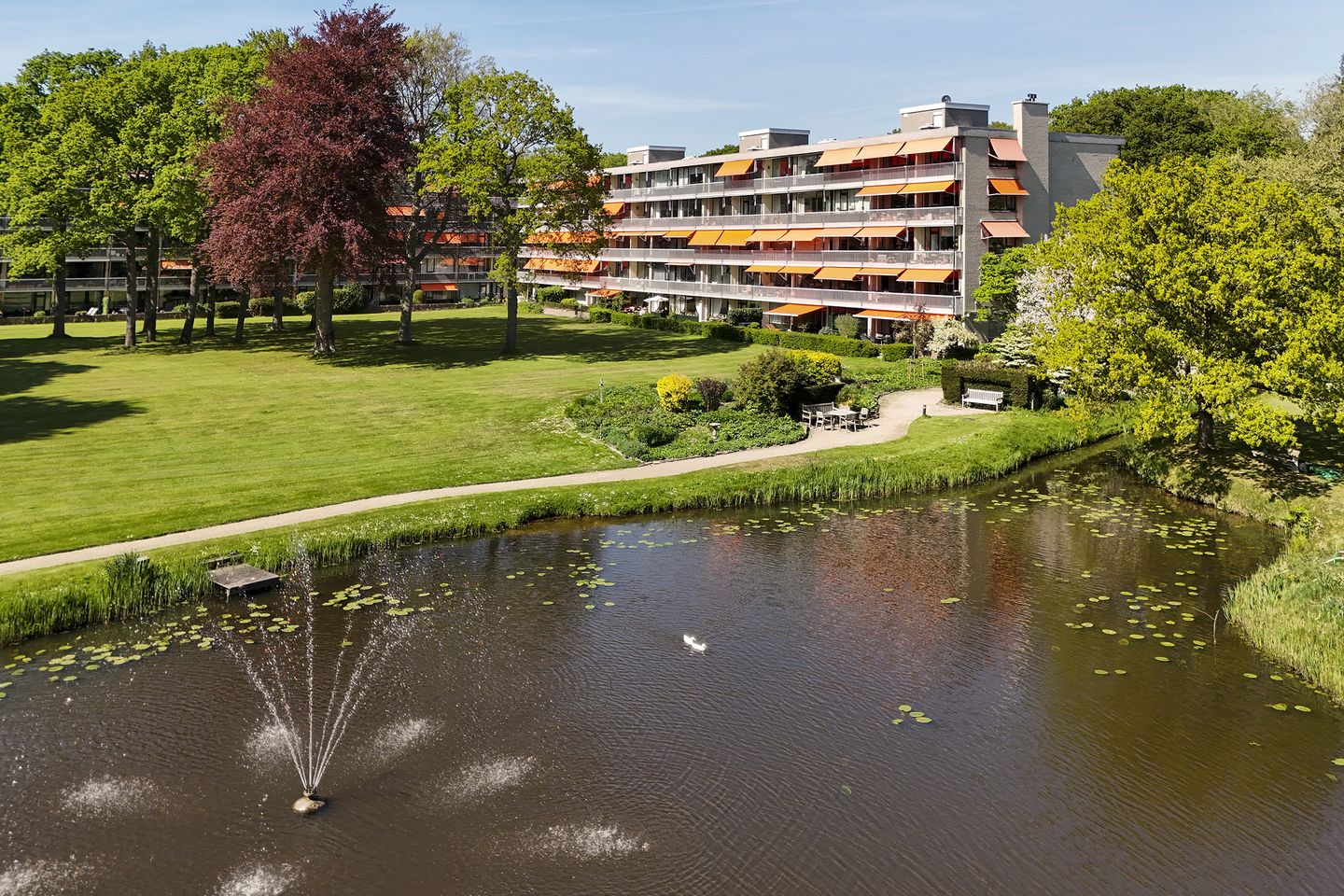 * Prachtig aangelegd privé-park (4,5 ha) met vijver, fontein, zitbanken en ruime wandelpaden