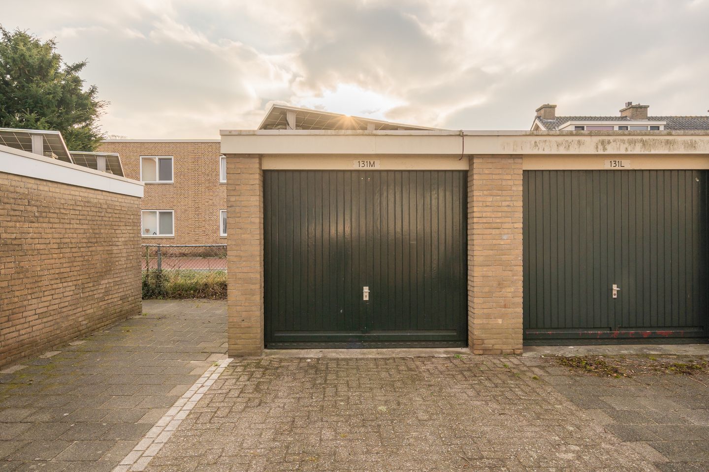 Ruime garagebox voorzien van stalen kanteldeur gelegen aan een plein met meerdere garageboxen in het van Polanenpark.