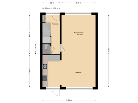 Via de ruime voortuin bereik je de entree met de hal, voorzien van meterkast, garderobe, trapopgang, modern toilet en praktische trapkast. De sfeervolle woonkamer van circa 38 m² (inclusief keuken) staat in open verbinding met de keuken en biedt een prettige, lichte leefruimte. De vloer is afgewerkt met laminaat en de wanden zijn strak gestuct.