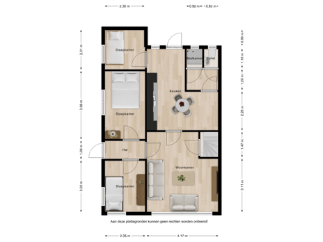 Bij aankomst heb je alvast de mogelijkheid om de auto op de oprit van het perceel te parkeren. De woning wordt aan de zijkant betreden. Hier betreden we de inkomhal met toegang tot de eerste twee slaapkamers en rechtdoor de woonkamer. De beide slaapkamers zijn beiden groot genoeg voor een tweepersoonsbed en een kledingkast. Wanneer we rechtdoor de woonkamer binnen stappen, dan zie je gelijk een mooie ruimte met plaats voor een eettafel en een gezellige zithoek. Hier is tevens een kast voorzien met toegang tot de verdieping middels een losse trap. Plaats hier zeker een vaste trap om de verdieping goed te kunnen gebruiken. Aansluitend is de keuken te vinden. Deze is ook ruim van opzet en biedt genoeg plaats voor een tweede eettafel. Vervolgens wordt middels een halletje het toilet en de douche betreden. Tenslotte treffen we nog een laatste ruimte aan die gebruikt kan worden als derde slaapkamer, hobbykamer of kantoor.