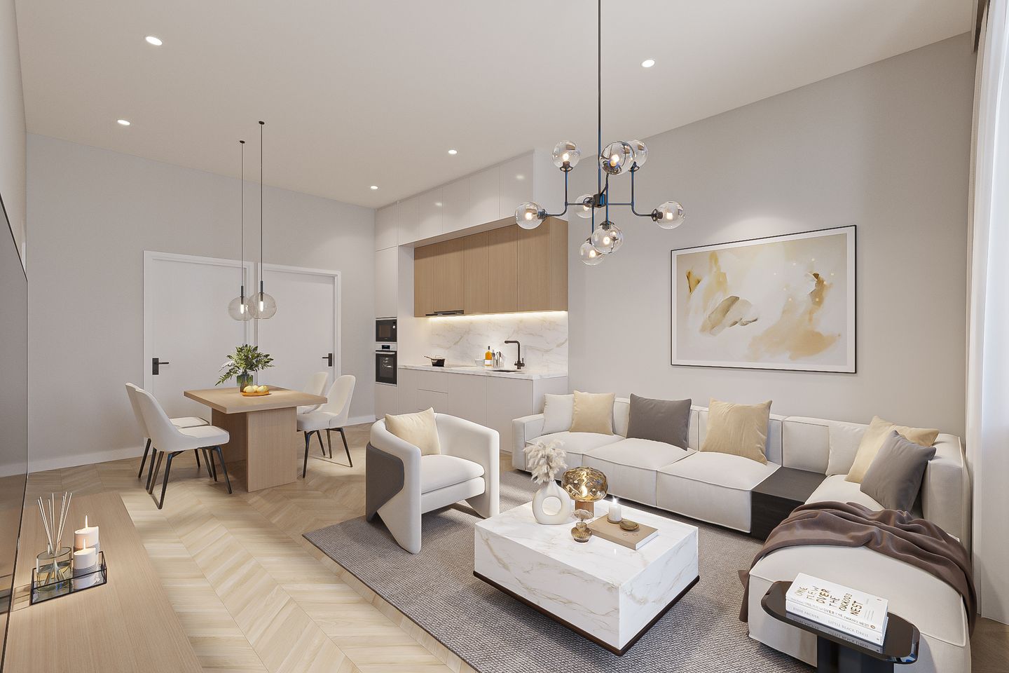 Om een goede indruk te krijgen hoe het appartement er uit komt te zien heeft de opdrachtgever fraaie visuals laten maken ter ondersteuning. Uiteraard geef je zelf straks je eigen appartement de uitstraling die je zelf wenst.