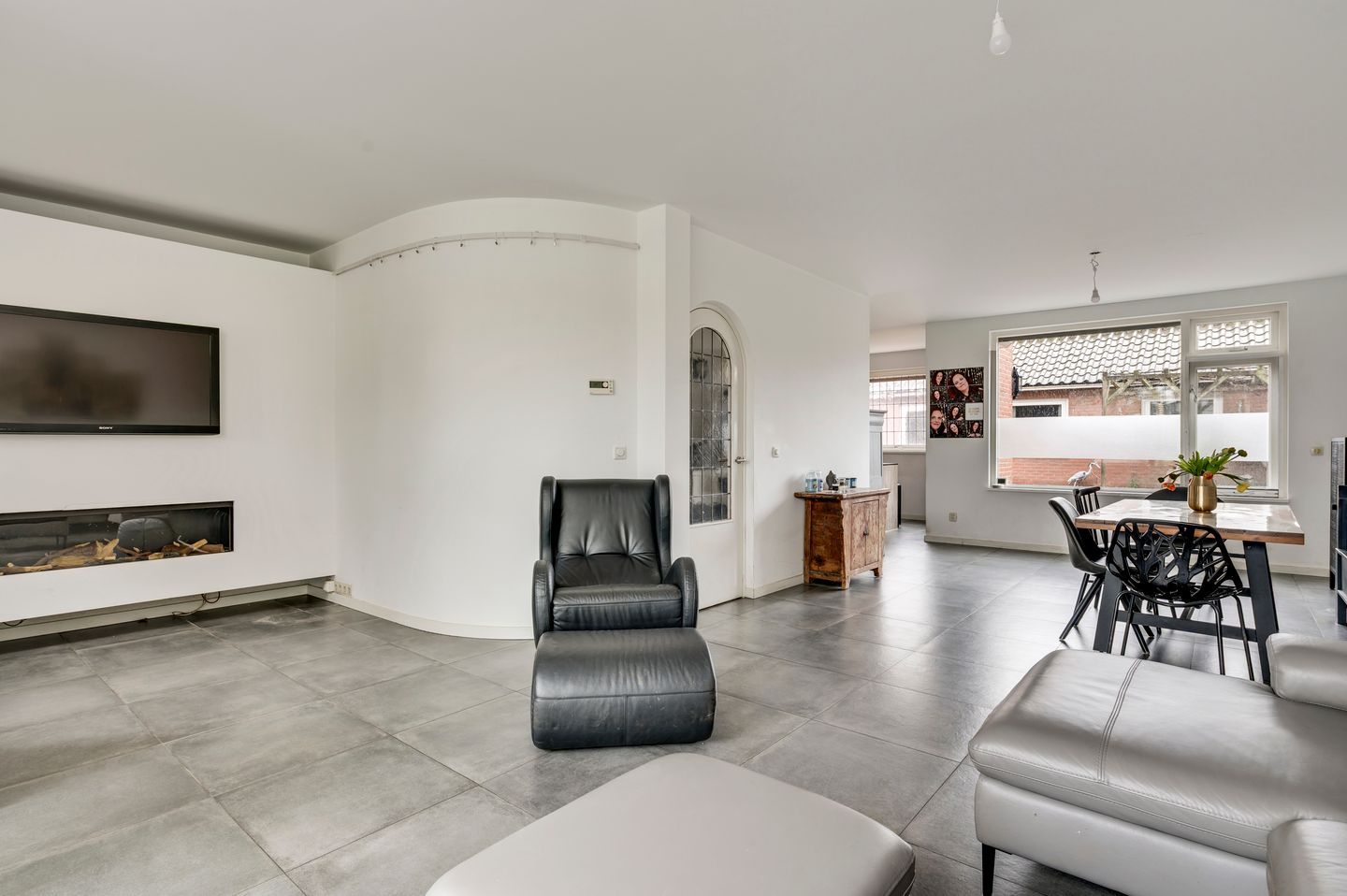 De ruime, uitnodigende hal/entree geeft toegang tot de vernieuwde meterkast (met elektrische groepen en glasvezelaansluiting) en toiletruimte. De zeer ruime L-vormige woonkamer is voorzien van een fraaie plavuizenvloer met comfortabele vloerverwarming en kent veel lichtinval met tuinzicht. Verder is er een gezellige gashaard. Vanuit de woonkamer is de aanbouw toegankelijk met een half open keuken met heerlijk tuinzicht en een mooie moderne combinatie (2017) met schiereiland en inbouwapparatuur. De keuken is o.a. voorzien van een inductiekookplaat met afzuiging, Quooker, koel-vriescombinatie (2025), oven (2025), combi magnetron en vaatwasser (2024).