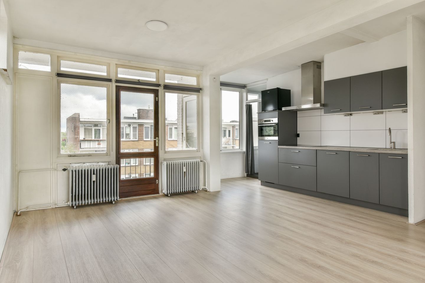 Entree centrale trappenhuis, de bergingen in de onderbouw van het complex. Entree appartement, ruime hal voorzien van de meterkast en ingebouwde kast met de watermeter, modern zwevend toilet, 2 goed formaat slaapkamers gelegen aan de voor- en achterzijde van het appartement. Zeer ruime woonkamer van ca. 30 m² met veel lichtinval door de raampartijen aan de voor- en achterzijde, de open keuken is in 2024 vernieuwd en v.v. diverse inbouwapparatuur. Vanuit de woonkamer is er toegang tot het zonnige balkon op het noordwesten. De badkamer bevindt zich achter de keuken en is v.v. een raam, elektrische boiler voor het warmwater, wasmachine aansluiting, net wastafelmeubel en douche.