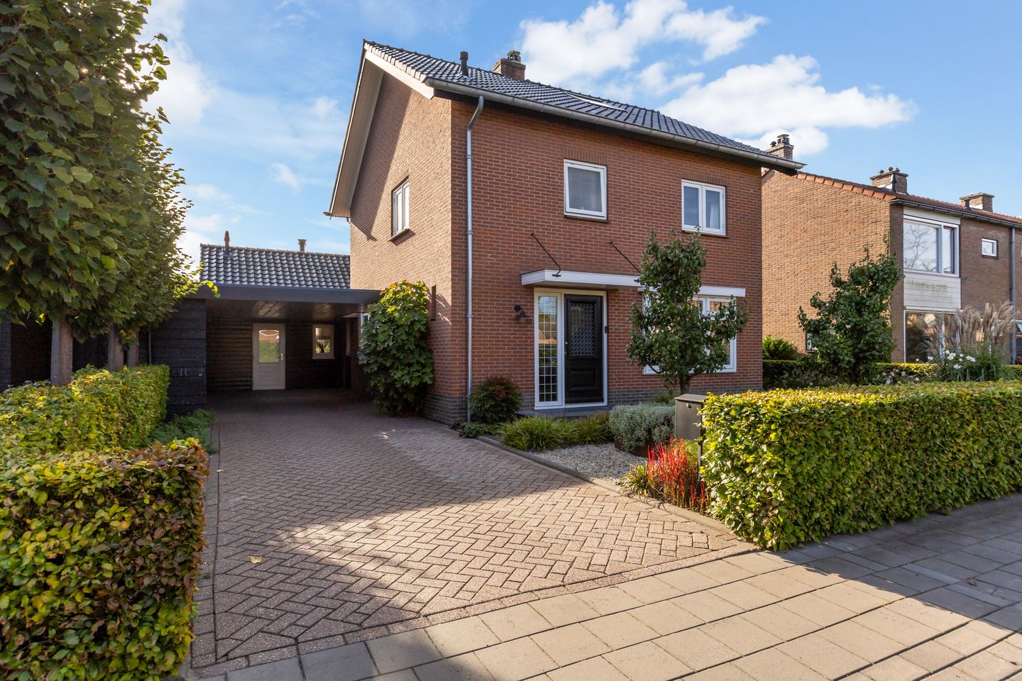 De op het zuidoosten gelegen achtertuin is een echte eyecatcher. Dankzij de vrije ligging aan de achterzijde geniet je hier van volop rust en ruimte. De tuin is ingericht met een groen gazon inclusief trampoline en een ruim bestraat terras met aangebouwde veranda, waardoor je zowel in de zon als in de schaduw heerlijk kunt ontspannen en genieten van het buitenleven. Aan de voorzijde biedt de overkapping, samen met de oprit, voldoende parkeergelegenheid. Daarnaast is er in de directe omgeving volop ruimte om te parkeren en zijn er diverse speelvoorzieningen voor kinderen aanwezig.