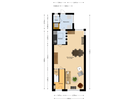 • Dak deels nageïsoleerd; woonkamer en bijkeuken met voorzetwanden