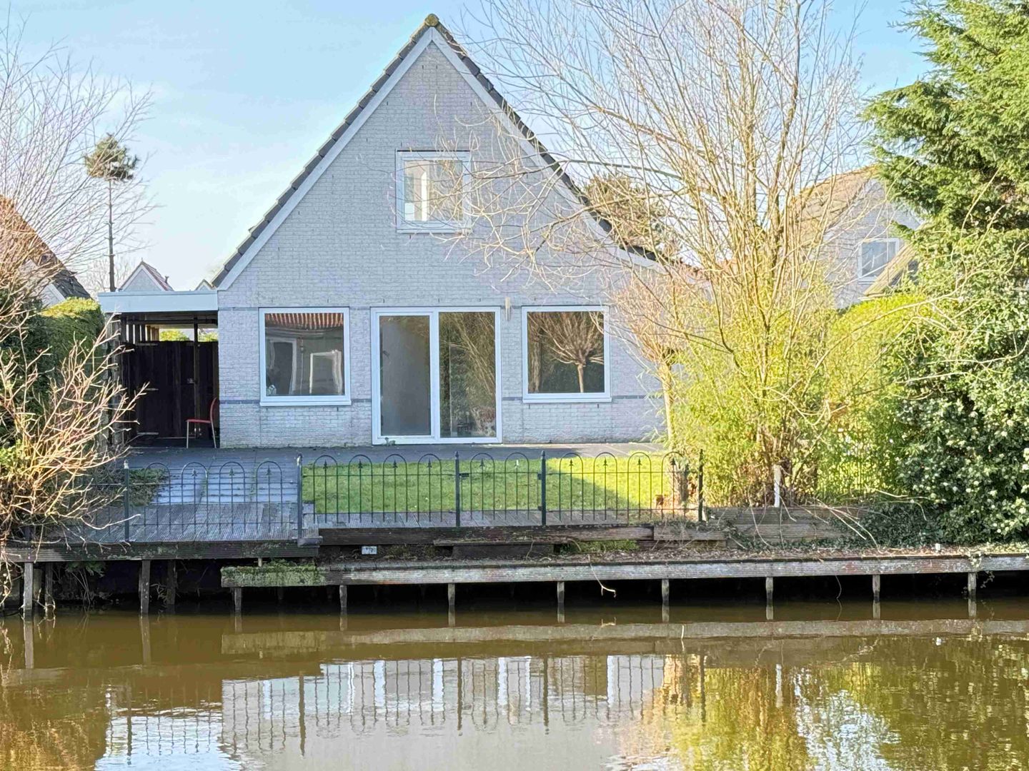 Op bungalowpark De Vlietlanden is te koop gekomen aan doorgaand vaar- en viswater deze schitterend verbouwde vrijstaande woning type Groote Vliet met een hardhouten aanlegsteiger voor uw eigen boot. Alleen nog een paar puntjes op de i en u kunt uw woning gelijk inrichten. De woning is voorzien van een carport, dus ijskrabben in de winter behoort tot het verleden. De woning staat op eigen grond en permanente bewoning is toegestaan.