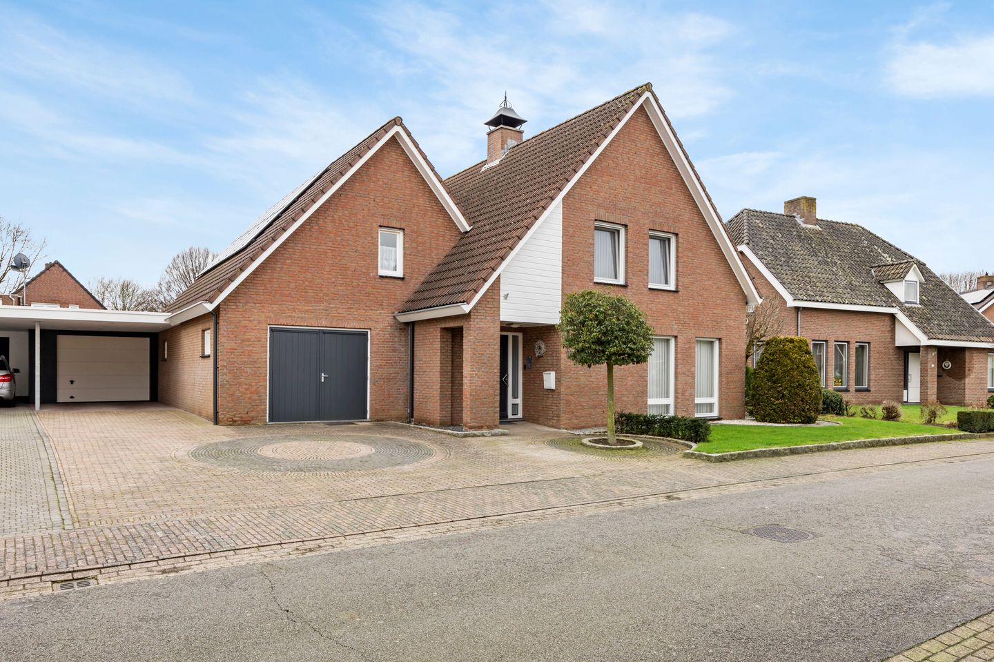 Of je parkeert de auto makkelijk onder de aanwezige carport, voor de garage.