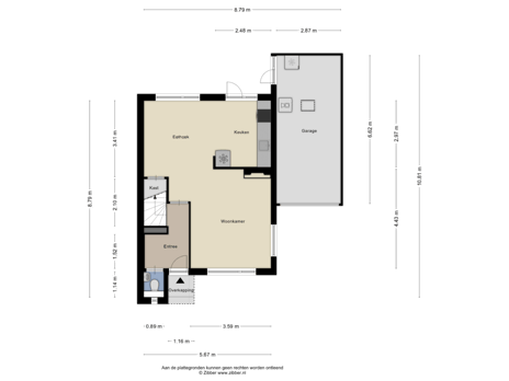 - 99 m² (9,51 meter diep en 10,36 meter breed)