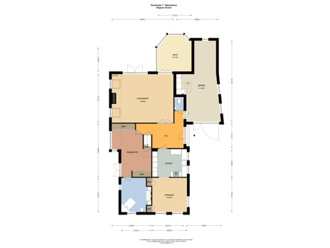 Begane grond: entree, centrale hal met toilet en toegang tot kelder en garage, sfeervolle woonkamer met stookgelegenheid en aangebouwde tuinkamer/serre, keuken voorzien van diverse A-kwaliteit inbouwapparatuur, doorloop naar de eetkamer met veel licht en zicht op de sfeervolle woonomgeving.