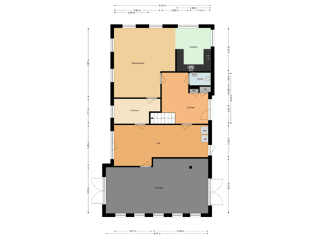 Begane grond: entree in ruime hal met toegang tot meterkast, toilet met fonteintje, voorraadkast, trapopgang verdieping (zeer fraaie trap) en toegang tot woonkamer. De sfeervolle woonkamer met voldoende lichtinval wordt verbonden met de half open keuken. Via de woonkamer komt u in een kamer welke nu functioneert als kantoor, aansluitend een zeer ruime bijkeuken en inpandige garage.