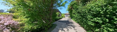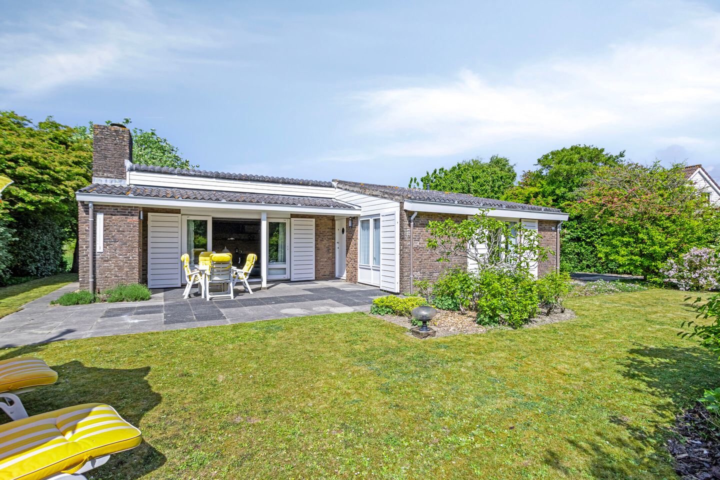 De woning is nagenoeg omgeven door groen, wat zorgt voor veel privacy en een rustige sfeer. Het terras op het zuidwesten biedt volop zon. Aan de achterzijde bevindt zich een sfeervol vrijstaand tuinhuisje met rietenkap.