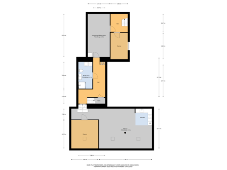 Souterrain: hal - slaapkamer - inloopkast/ wasruimte - badkamer met toilet, douchecabine en wastafelmeubel - studio met woonkamer en keukenblok en slaapkamer.