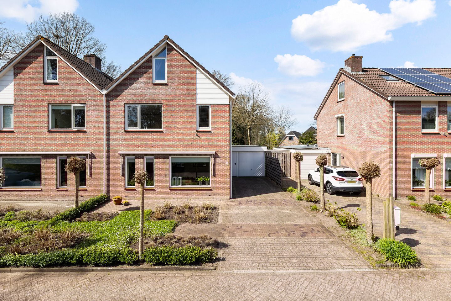 De oprit is zo’n 13 meter lang en biedt daardoor voldoende ruimte aan twee auto’s, maar is ook lang genoeg voor een auto én een caravan. Door de breedte van de oprit kun je er dan met de fiets nog gemakkelijk langs. Er is bovendien een laadpaal aanwezig; handig voor een eventuele elektrische auto.