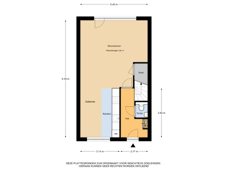 - 77 m² (13,70 meter diep en 5,60 meter breed)