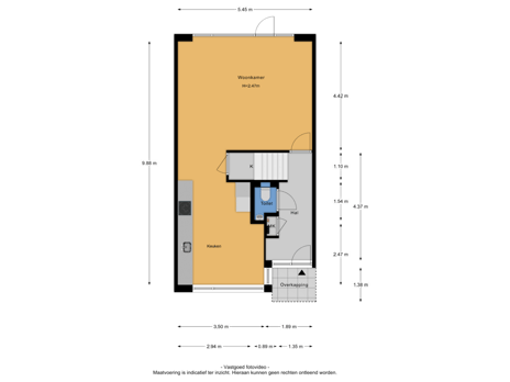Entree, hal, voorzien van een garderobehoek, een toiletruimte met hangcloset en fonteintje, de meterkast, de trapopgang naar de verdieping en toegang tot de woonkamer. De tuingerichte woonkamer beschikt over een grote pui, een praktische trapkast en biedt volop ruimte voor ontspanning en gezellig samenzijn. Via de deur loop je direct de achtertuin in.