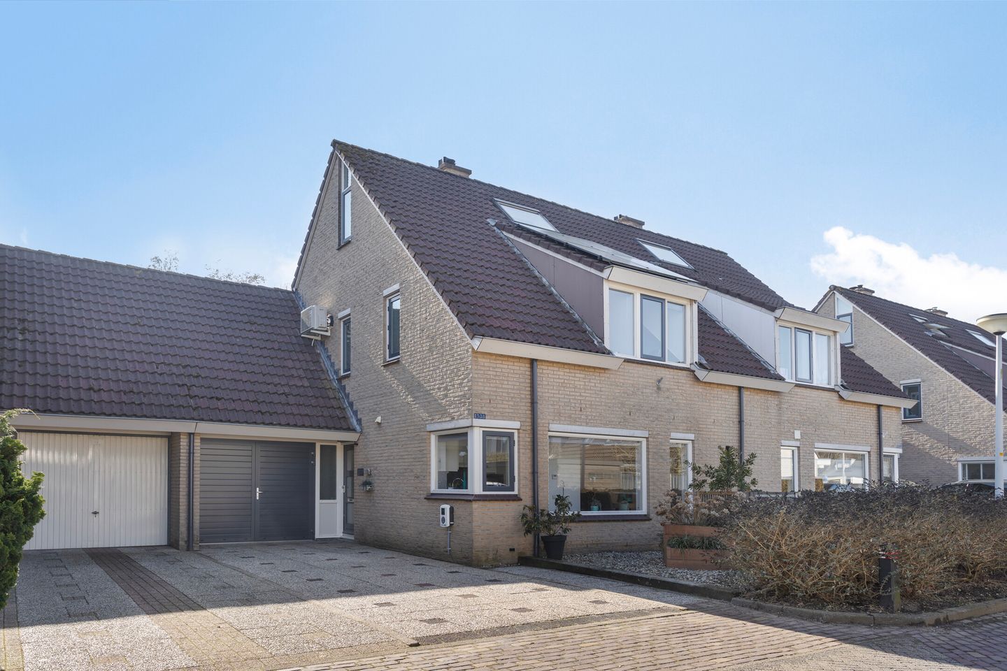 De voortuin is onderhoudsarm en voorzien van siergrind en vaste planten. De achtertuin op het zuiden biedt volop privacy met een houten schutting, een ruim betegeld terras, een grasveld en sfeervolle borders. De ruime stenen garage beschikt over een wasbak, elektra, houten kozijnen en een vliering met mogelijkheden om een vijfde slaapkamer te creëren.