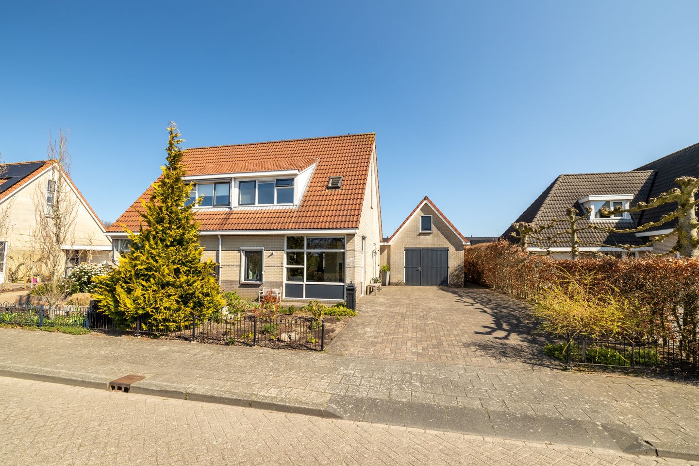 De fraai aangelegde voor- en achtertuin bieden veel privacy. De zonnige achtertuin is een heerlijke plek om te ontspannen en te genieten van het buitenleven. In de tuin is een overkapping met tuinkamer geplaatst, een perfecte plek om in de zomer van te genieten. Dankzij de dubbele oprit is er voldoende parkeergelegenheid voor meerdere voertuigen, een caravan of camper.