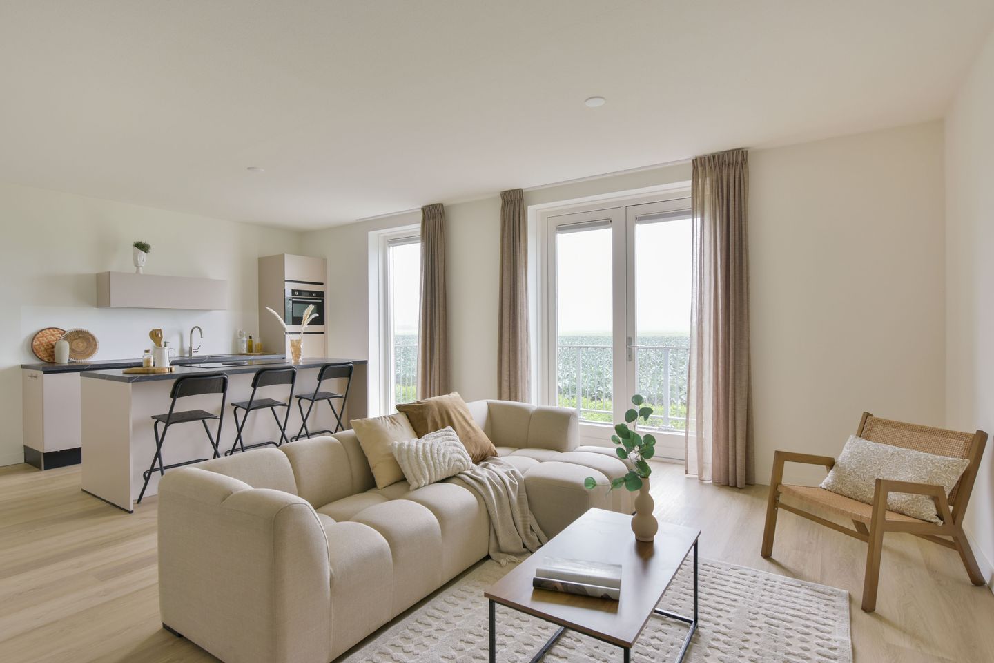 Wonen aan de Molenweg betekent thuiskomen in rust en ruimte. Dit unieke appartement biedt je niet alleen comfort maar ook een uitzicht waar je gegarandeerd elke dag van zal genieten. Heerlijk koken doe je in de luxe open keuken, compleet met een kookeiland en hoogwaardige inbouwapparatuur zoals een Bora inductiekookplaat, combimagnetron, koel-/vriescombinatie en vaatwasser. Doordat de keuken in open verbinding staat met de woonkamer, blijf je altijd in contact met je gasten of medebewoners.