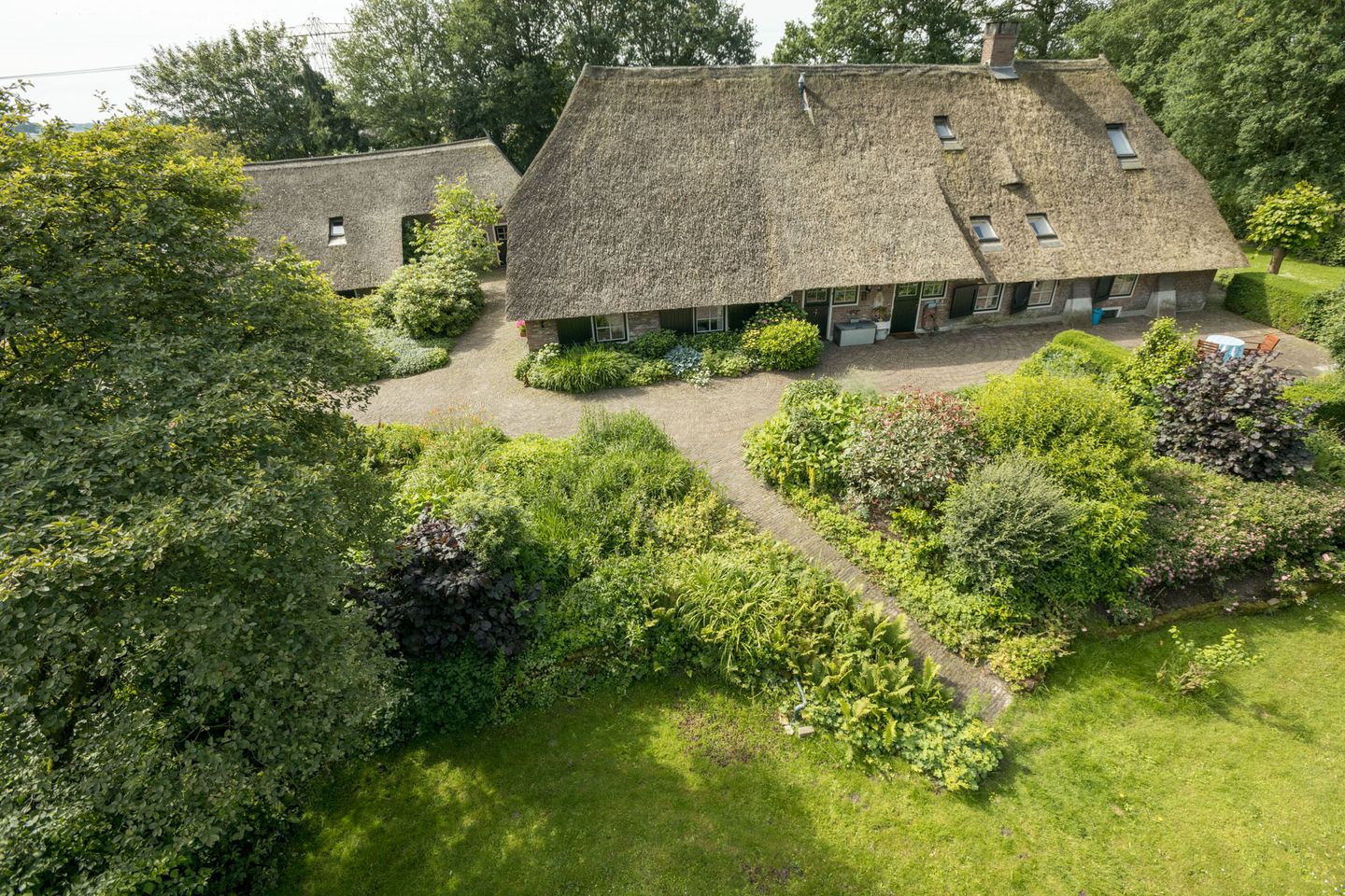 Rijd via je eigenweg van ruim 500 meter, naar deze rietgedekte woonboerderij uit 1610 (bijgebouw uit circa 1504).
