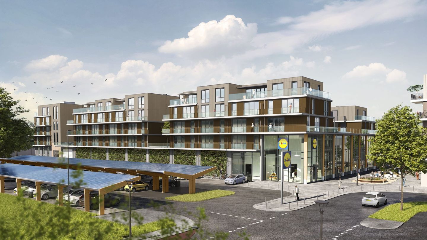 De ontwikkeling bestaat uit twee gebouwen die samen 104 appartementen huisvesten. Het pronkstuk is de sfeervolle binnentuin op het dak van de eerste verdieping, met charmante verbindingsbruggen, waar bewoners kunnen ontspannen en elkaar ontmoeten. Alles wat je nodig hebt, van dagelijkse boodschappen tot je favoriete winkels, ligt letterlijk onder jouw voeten. Met de Lidl supermarkt als blikvanger ben je altijd dicht bij voor je dagelijkse benodigdheden.